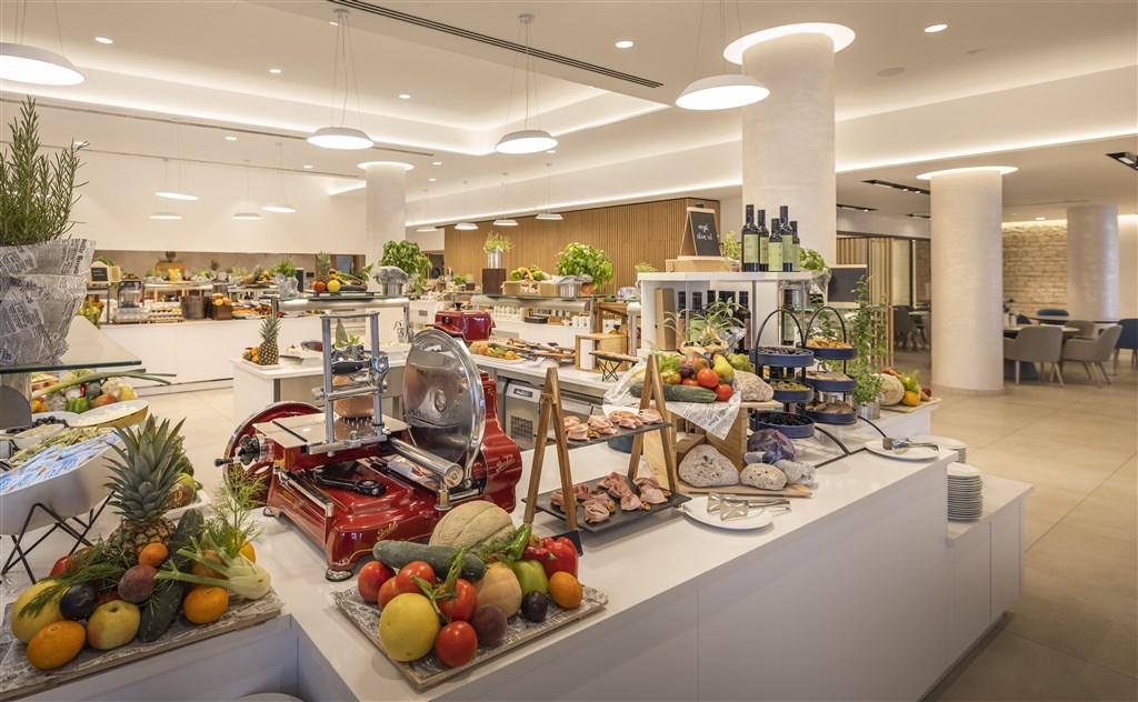 recepcia • hlavná klimatizovaná reštaurácia • reštaurácia a bar na streche hotela • bar pri bazéne • bar na pláži • moderne vybavená detská herňa (na dvoch poschodiach) s vonkajším detským ihriskom • otvorené bazény so sladkou vodou - jeden pre deti a dva dospelých, s terasami na slnenie • ležadlá a slnečníky pri bazénoch zdarma (v obmedz. počte) • Wellness & SPA centrum (1 600 m2) s vnútorným, vyhrievaným bazénom so sladkou vodou • jacuzzi • fínska sauna • parný kúpeľ • fitness zdarma • masáže tela a tváre • WiFi pripojenie v celom hoteli zdarma • parkovanie za poplatok cca 8 eur/deň/auto a prenájom garáže cca 15 €/deň/auto (rok 2025)