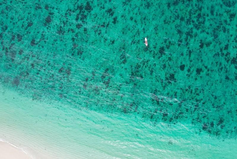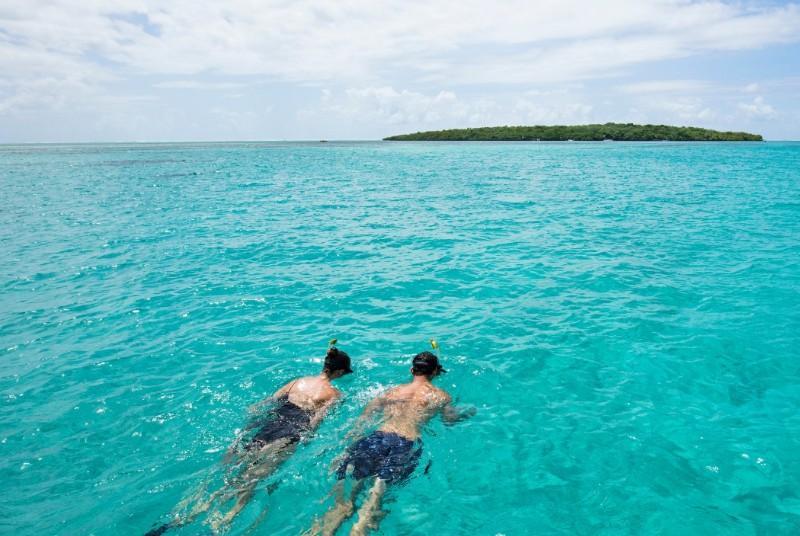 nabízí jemný písek a lagunu vhodnou pro šnorchlování, paddle i