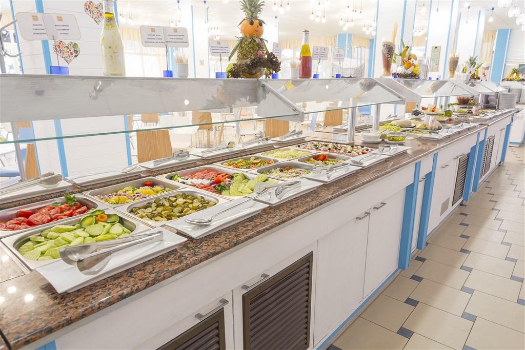 raňajky, obedy a večere formou bohatých bufetových stolov • nealkoholické nápoje, koktaily, teplé nápoje a výber miestnych a dovážaných liehovín od 10:00 - 23:00 hod. • občerstvenie - sendviče, pizza, koláče, sušienky, čerstvá zelenina a ovocie, zmrzlina v určených hodinách • na pláži vo vyhradenom priestore ležadlá a slnečníky (obmedzený počet) a nápoje v plážovom stánku (čapované nealko a pivo) od 10:00 - 18:00 hod.