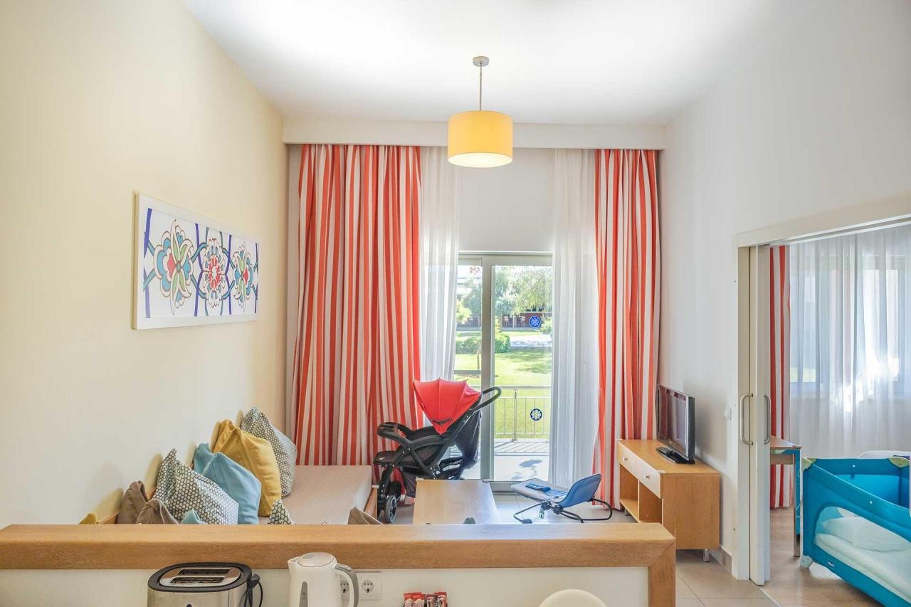 300 izieb na rozlohe 46,000 m2, vstupná hala s recepciou, hlavná reštaurácia, 2 A la Carte reštaurácie (Stredomorská za poplatok, Turecká 1x za pobyt zadarmo), snack bar, 4 bary, hlavný bazén, detský bazén, vnútorný bazén, bazén so šmykľavkami, ležadlá a slnečníky pri bazéne zdarma), služby práčovne (za poplatok), služby kaderníka (za poplatok), požičovňa áut (za poplatok), nákupné možnosti (Market, butik, obuv).