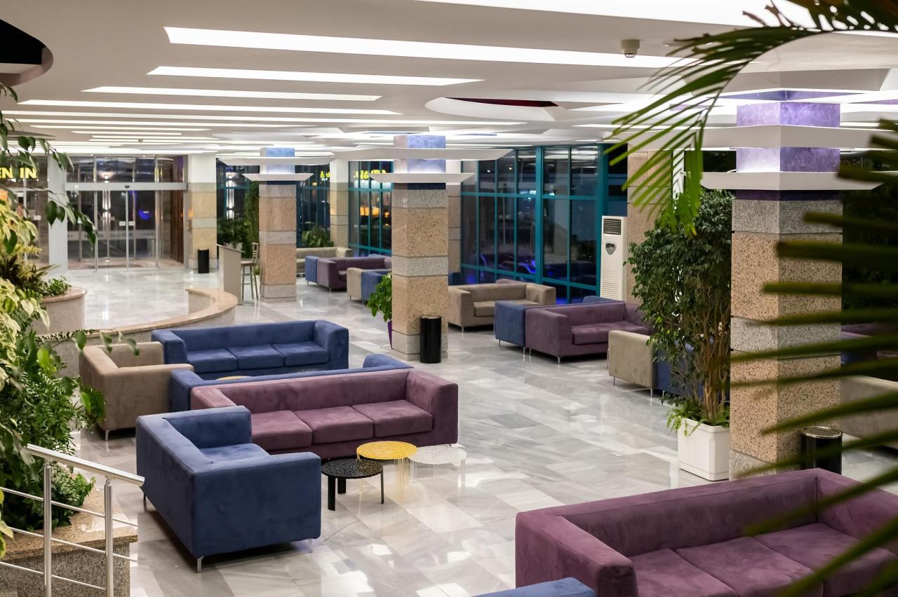 Vstupná hala s recepciou, trezor za poplatok, zmenáreň, výťah, lobby bar, reštaurácia, kaderníctvo, minimarket. V záhrade bazén so šmykľavkami, terasa s ležadlami a slnečníkmi zadarmo, bar pri bazéne. |