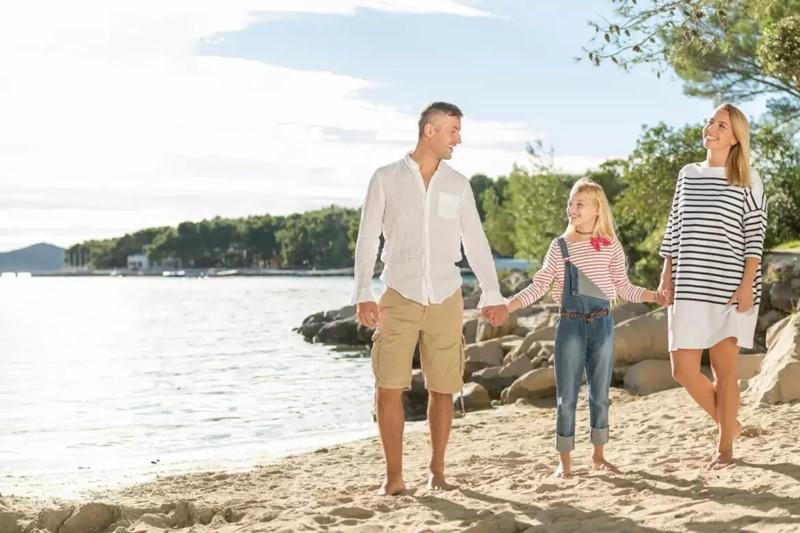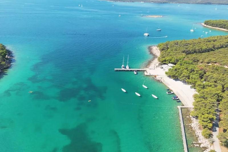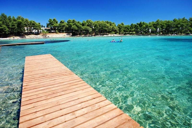 borovice. Dokonalá kombinace přírody a stylového prostředí. Mezi Biogradem na Moru a Pakoštane se nachází oáza soukromí a nádherné přírody, osada Crvena Luka, zaslíbená turistům vyhledávajícím klid. Pro rodiny s dětmi je tu část zátoky s mělkým mořem a písčitou pláží, další pláže jsou kamenné, s upravenými betonovými plochami. Cca. 600 m od střediska Crvena Luka je nudistická pláž. Kdo zatouží po rušném turistickém životě, zamíří nejčastěji do rušného Biogradu na Moru (cca 5 km). |