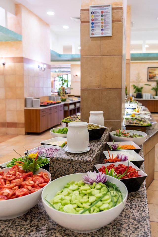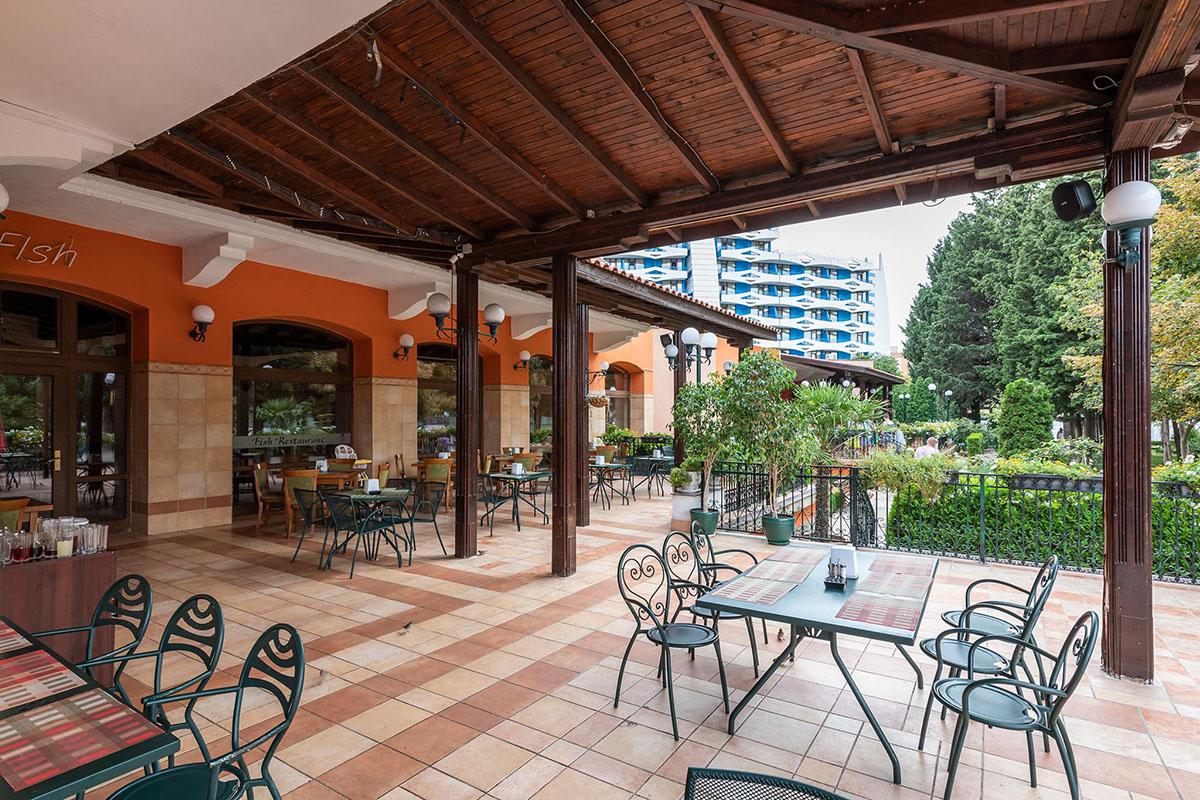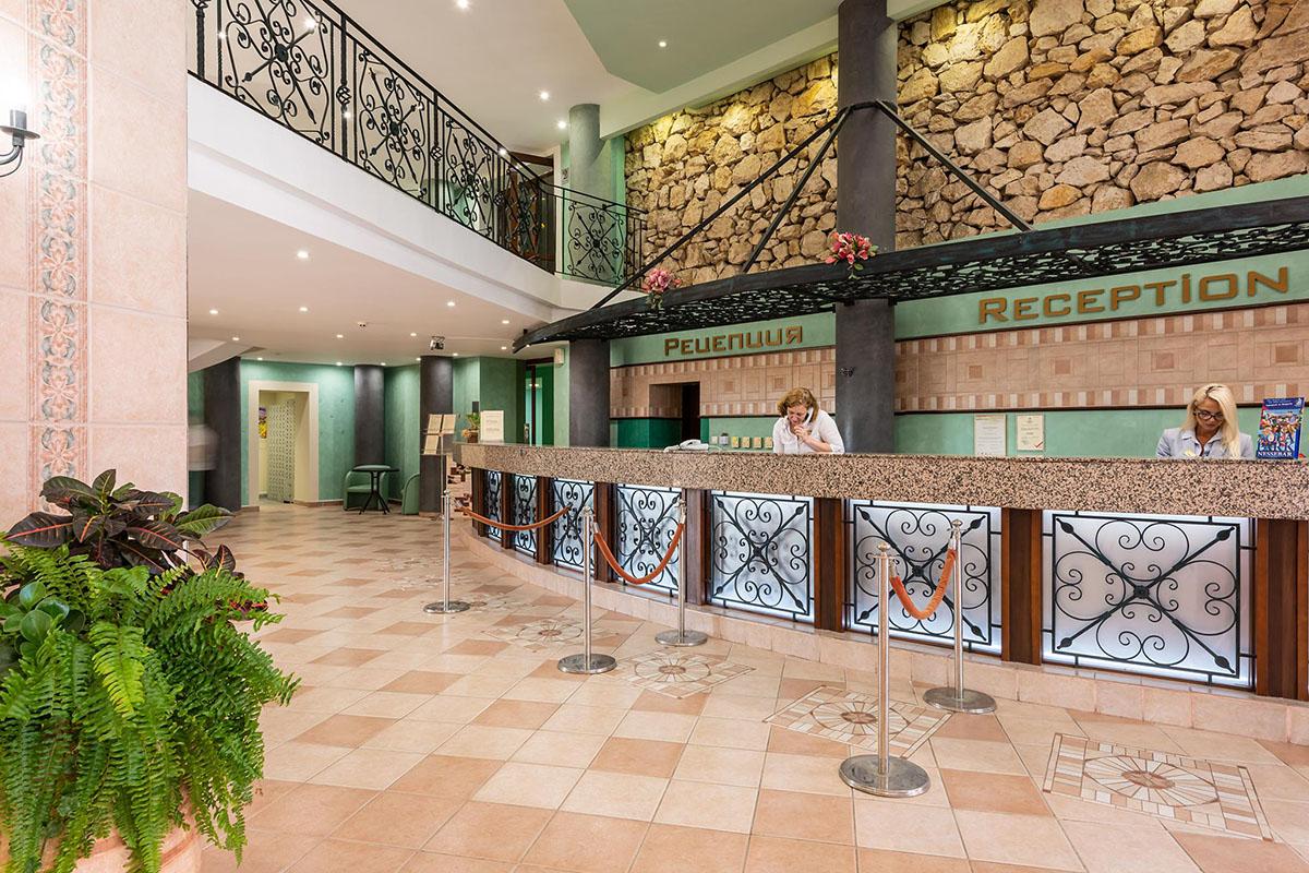 letiska v Burgase sa hotel nachádza 30 kilometrov. Vybavenie: Hlavná reštaurácia, lobby bar, snack bar, bar pri bazéne, vonkajší bazén s integrovanou detskou časťou, jacuzzy (pri bazénoch), ležadlá a slnečníky pri bazéne, detský klub (4-12 rokov), detské ihrisko, detské disko, detský kútik, denné a večerné animácie, stolný tenis, šípky,aerobik, aquagym, vodné pólo, zumba, boccia, Wifi v hlavnej budove a vo verejných priestoroch. Hotel má bezbariérový prístup. Za poplatok: Á la carte reštaurácia - Pizza & Chicken & Fish (1x za týždenný pobyt zdarma, nutná rezervácia), tenisové kurty, tenisové kurzy, fitness, billiard, trezor na recepcii, práčovňa, telefón, SPA - sauny, masáže, kozmetický salón; parkovisko, Kasíno (od 18 rokov). Ubytovanie: Priestranné vkusne zariadené klimatizované 2- lôžkové izby s možnosťou 1 alebo 2 prísteliek, SAT-TV, minichladnička, kúpeľňa so sprchou, sušič vlasov, balkón. Hotel má základné vybavenie pre hendikepovaných. Za poplatok: detská postieľka na vyžiadanie, telefón. Stravovanie: ALL INCLUSIVE Oficiálna kategória: **** Naše hodnotenie: Kvalitný hotel so skvelými službami, vynikajúcou polohou neďaleko centra Slnečného pobrežia a len pár metrov od nádhernej pláže poskytuje komfort aj tým náročnejším klientom. Je vhodný pre všetky vekové kategórie, ako pre mladých, tak aj pre rodiny s deťmi. |