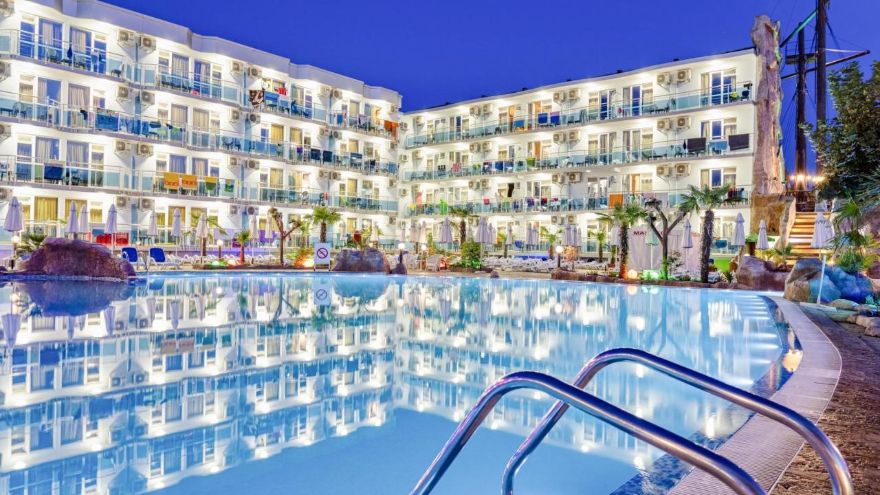 Vstupná hala s recepciou, trezor za poplatok, zmenáreň, výťahy, reštaurácia, reštaurácia à la carte, lobby bar, minimarket, obchod so suvenírmi, konferenčná sála. Vonkajší bazén, bazén s tobogánmi a šmykľavkami (pre hotelových hostí zdarma), bar pri bazéne a terasa s lehátkami a slnečníkmi zdarma. |