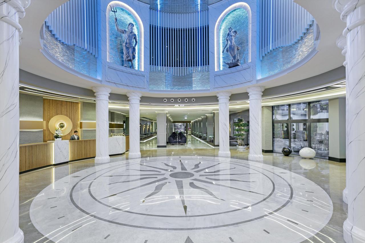 Vstupná hala s recepciou, hlavná reštaurácia, 5 reštaurácií à la carte (turecká, rybia, talianska, mexická, ďaleký východ), 5 barov, menšie obchodíky, konferenčné miestnosti, kaderníctvo, jacuzzi, 5 bazénov, jeden z nich so 4 tobogánmi, lehátka , slnečníky a osušky pri bazéne aj na pláži zadarmo. |