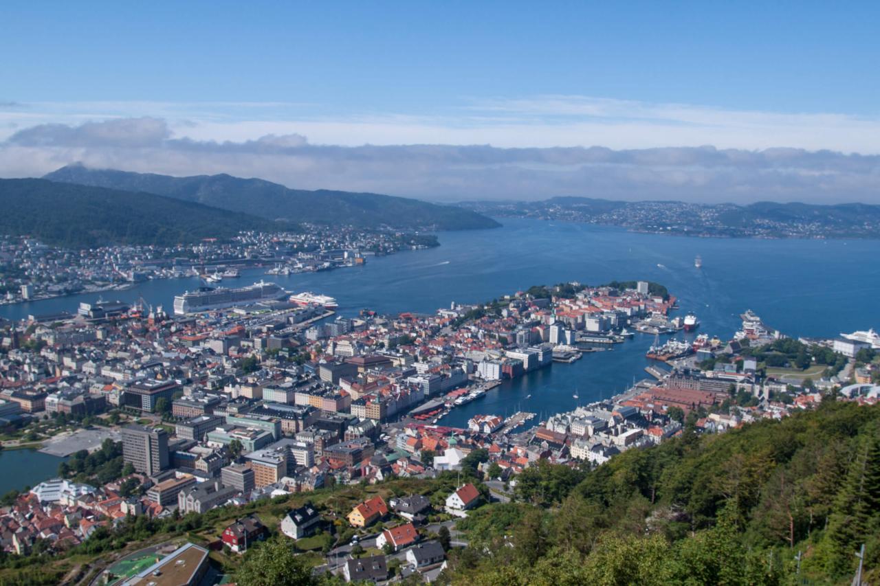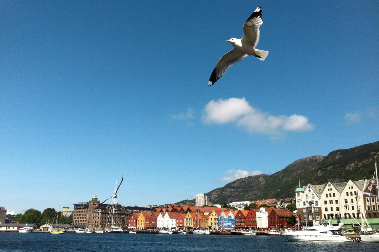 Najnórskejšie mesto na svete, BERGEN: prechádzka mestom, učupeným medzi siedmimi kopcami. Drevené domy obchodníkov ako svedectvo nemeckej histórie Bergenu (UNESCO), najzachovalejšia stredoveká pevnosť v Nórsku. Na rybom trhu možno ochutnáte výbornú rybiu polievku a odvážnejší aj veľrybu. Kúpite si domov losiu či sobiu salámu? Vláčik nás strmým kopcom vyvezie na prekrásnu vyhliadku, odkiaľ budete mať mesto ako na dlani.