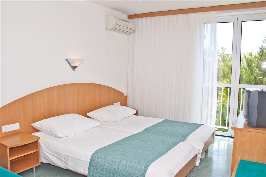 klimatizované 2-lôžkové izby s možnosťou prístelky • sprcha/WC • telefón • SAT TV • francúzsky balkón |