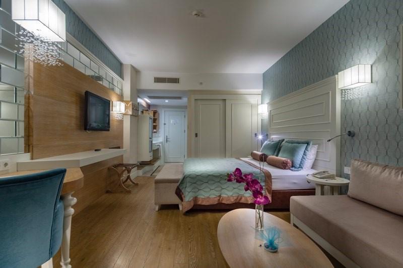 • priestranná rodinná izba s bočným výhľadom na more s možnosťou 2 prísteliek