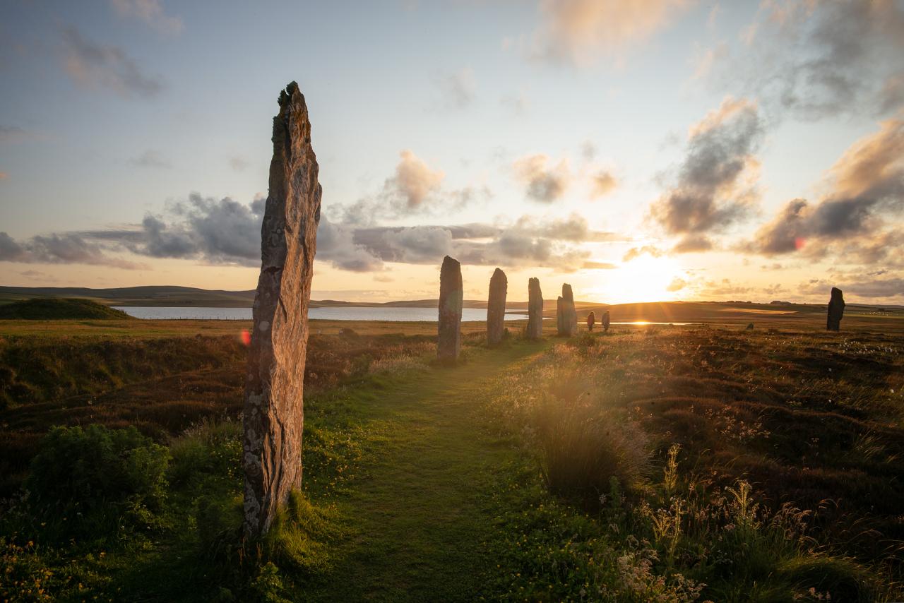 A na záver prichádza to najlepšie. Popri jazere Loch of Harray prichádzame k majestátnemu kruhu Ring of Brodgar. Všetky tieto lokality sú chránené pod patronátom UNESCO a Ring of Brodgar je ich korunou. Tu, na vyvýšenom mieste, stál kedysi kamenný kruh tvorený až 60 monumentálnymi menhirmi.