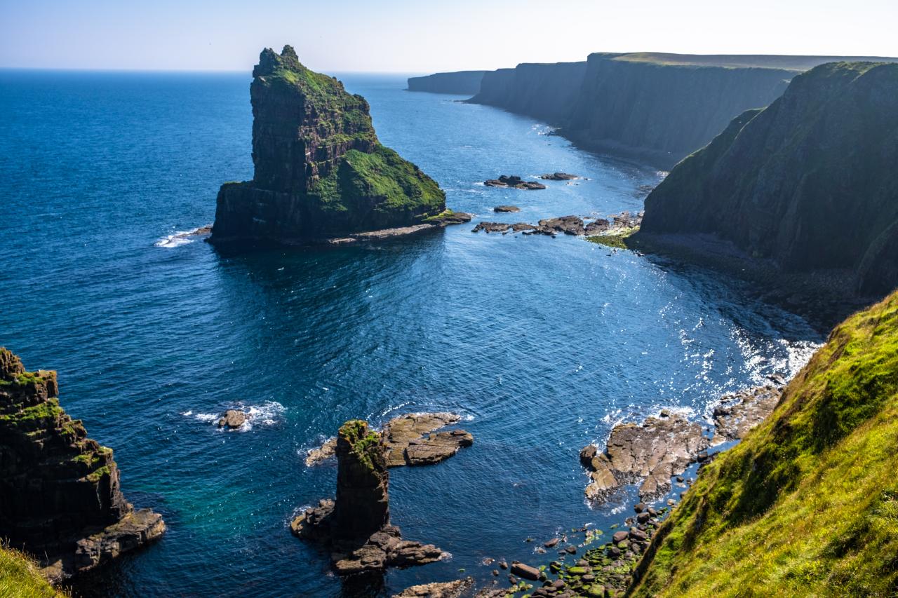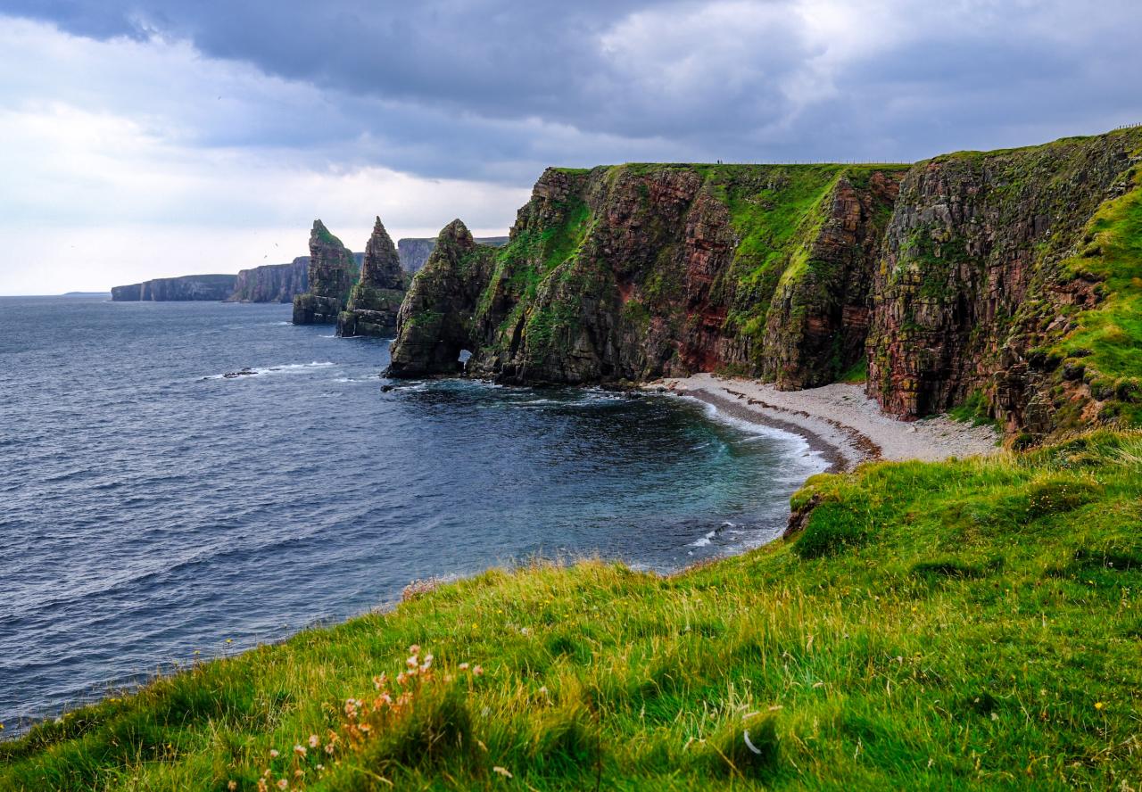 Naša cesta vedie ďalej cez pustý a drsný región Sutherland, až na samotný sever škótskej pevniny - ku krásnym útesom na Duncasby Head, ktoré tvoria najsverejnešie pobrežie pevninského Škótska. Z neďalekého mestečka John O'Groats sa naskytá panoramatický výhľad na Orknejské ostrovy - ak počasie dovolí.