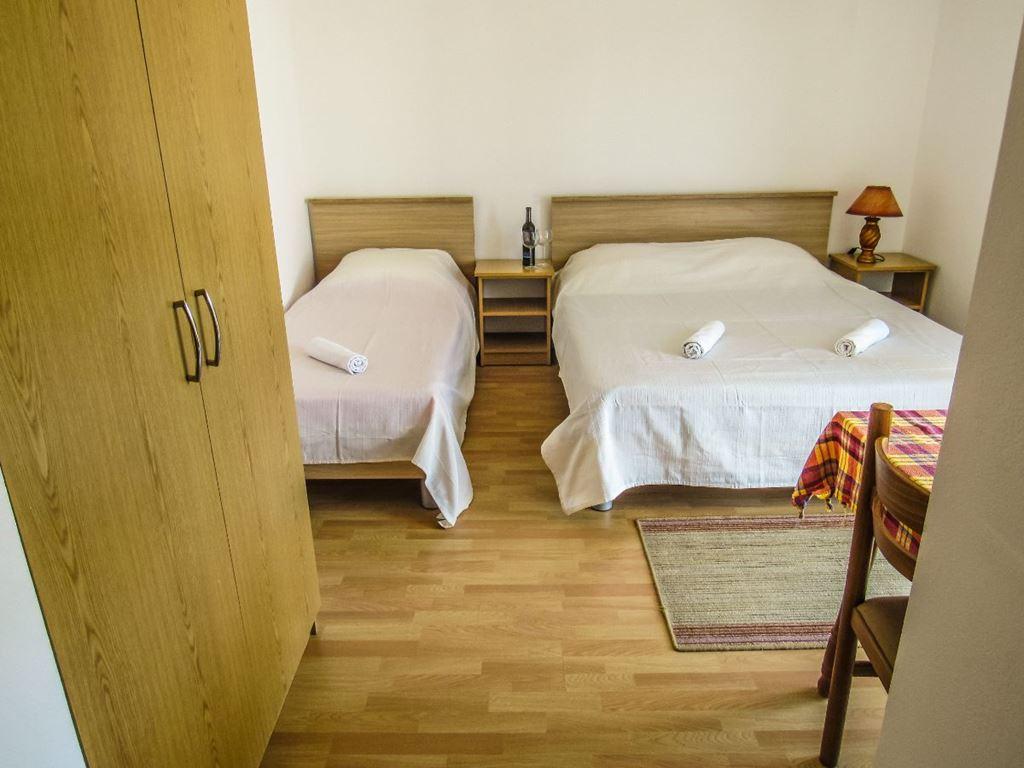 Apartmán až pro 10 osob je klimatizovaný apartmán, který má 2 koupelny, jednu se sprchovým koutem a druhou s vanou, plně vybavenou kuchyň, balkon s výhledem na moře. V jedno ložnice je 1 velká manželská postel, ve druhé ložnice je 1 velká manželská postel, ve třetí ložnici je 2 jednolůžkové postele, obývací pokoj má 1-2 rozkládací pohovky.