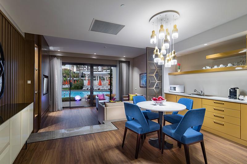 moderne zariadené priestranné dvojlôžkové izby s možnosťou 1 alebo 2 prísteliek • garden suity, rodinné suity a vily za príplatok • kúpeľňa s WC a sušičom na vlasy • klimatizácia • TV • telefón • trezor • minibar • set na prípravu kávy a čaju • bezplatné Wi-Fi pripojenie • pohovka • balkón